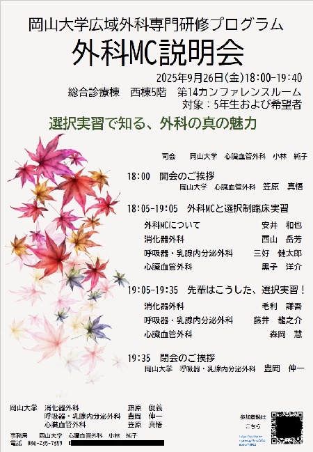 2025年9月26日に、主に医学科5年生を対象にした秋の岡山大学外科MC説明会を…
